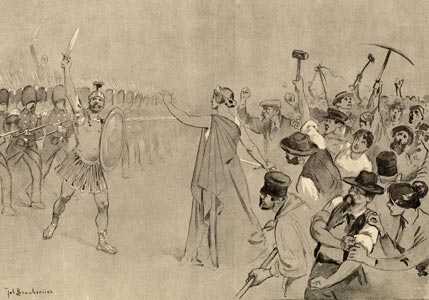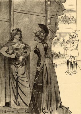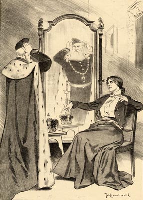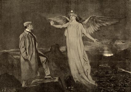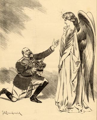 King Edward VII (to the angel of peace): Pleace, will you polish my crown?