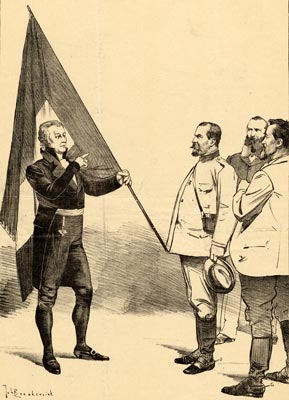 Gijsbregt Karel van Hogendorp: "Men, what ever happened, keep faithful to this flag. Once our Dutch flag was also trample upon, teared to pieces, vanished ... and yet!"