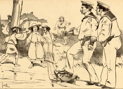 English sailor (to the German sailor):Be careful Wilhelm, be nice, watch me.