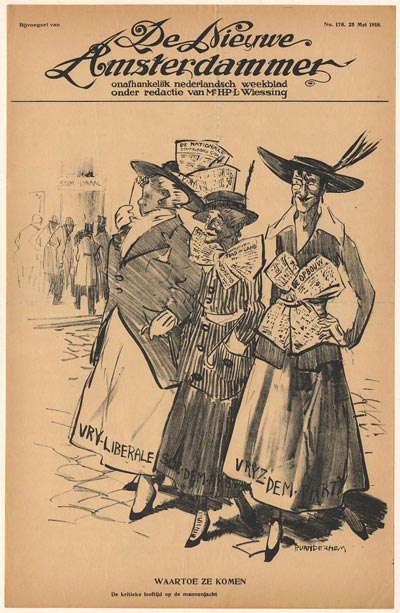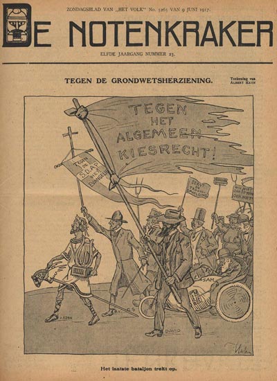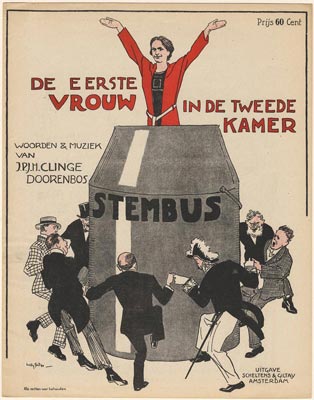 At the constitutional amendment of 1917 during the Cort van der Linden cabinet, all passive voting rights for both women and men were introduced, which led to the election (by men!) of Suze Groeneweg as the first woman in the Lower House. But active voting rights were only opened to men.