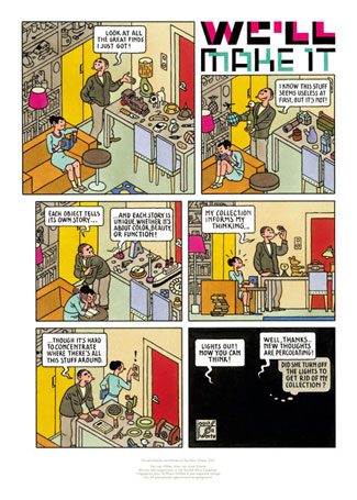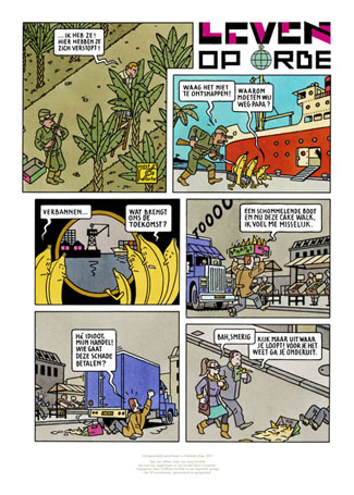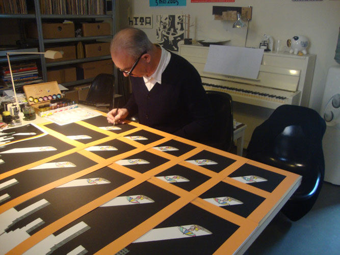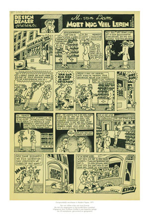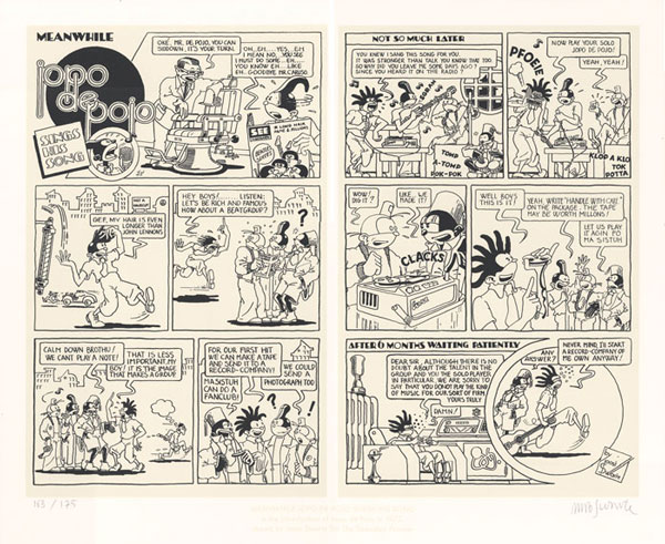 40 years ago Joost Swarte was asked to contribute to an international comic project about the Sixties. He drew a two page story introducing Jopo the Pojo. In 2011 the book The Someday Funnies finaly has been published and this year the original pages returned to Joost Swarte. A good occasion for us to make a silkscreen of this first appearance of Jopo de Pojo.