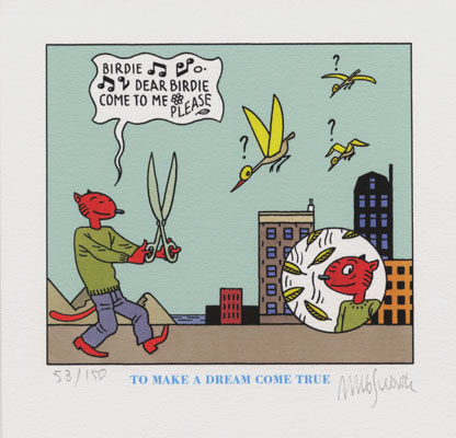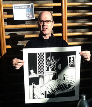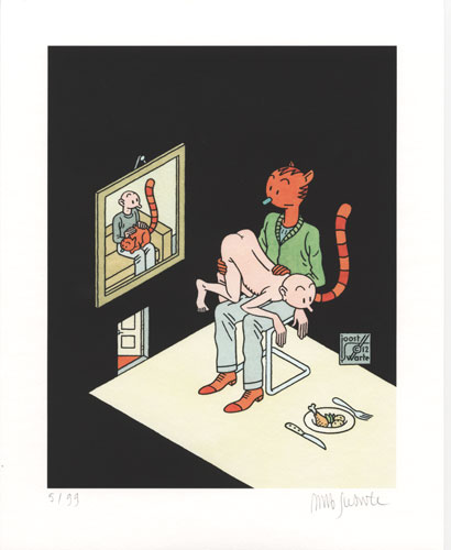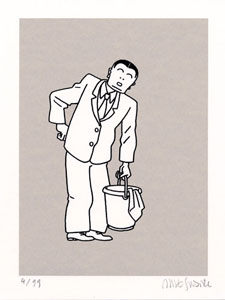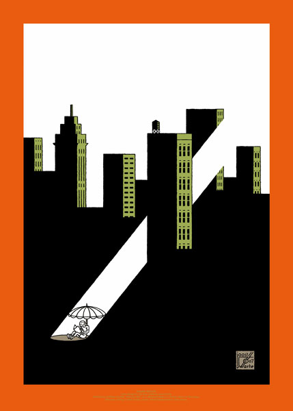 The little man and the sun-umbrella has been handcoloured personally by Joost Swarte. So every print will be unique.
