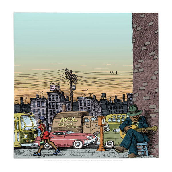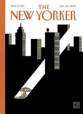 The award winning cover design for The New Yorker "Summer Reading" by Joost Swarte in silkscreen. And even better, Joost Swarte decided to make a so called 'rehaut' out of it. That means that a part of the print has been coloured by hand by himself, so that the prints differs one of the other.