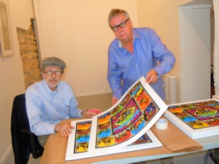 Hansje Joustra assists Mr.Crumb while signing the prints in Paris