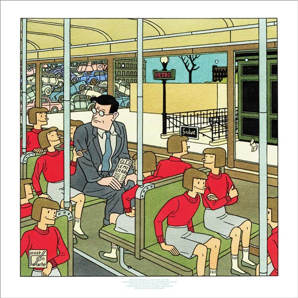 Griffioen Grafiek has now made prints of the original large and colourful designs. And like in the series “The Style” again in two versions: limited giclées in size 60 x 60 cm. and posters in size 50 x 70 cm. For the posters, Joost Swarte also designed a new font for the titles of the prints.