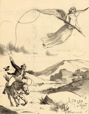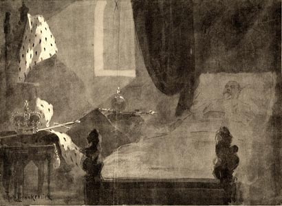 King Edward VII (to the angel of peace): Pleace, will you polish my crown?