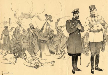 Kaiser Frans Joseph (to the Czar : How fortunate, Head of the Greek Church, that being a christian doesn't give us the obligation to end this massacre. . .