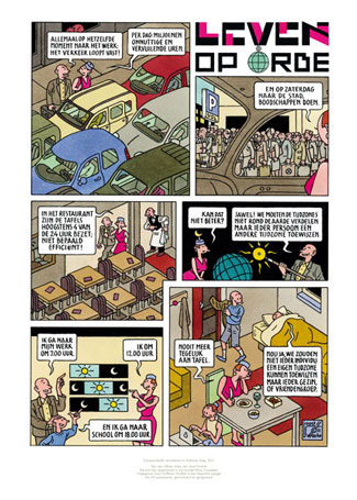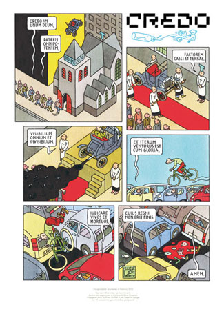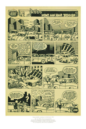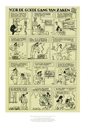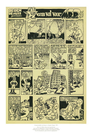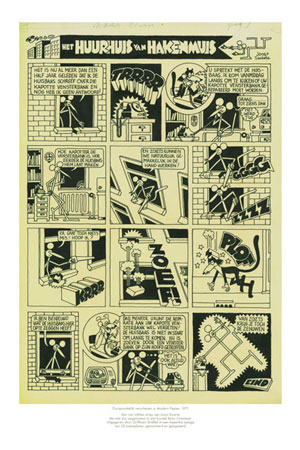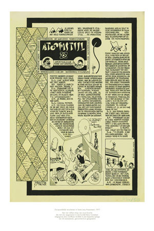 40 years ago Joost Swarte was asked to contribute to an international comic project about the Sixties. He drew a two page story introducing Jopo the Pojo. In 2011 the book The Someday Funnies finaly has been published and this year the original pages returned to Joost Swarte. A good occasion for us to make a silkscreen of this first appearance of Jopo de Pojo.