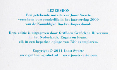 Lief klein verhaaltje in leporello-vorm, oplage 750 exemplaren. Prijs € 7.50