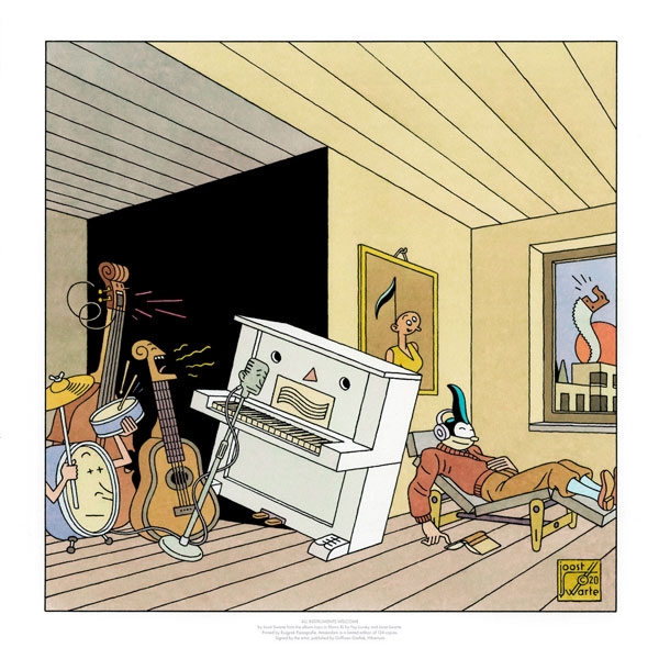 In 2004 Joost Swarte made this design for an exhibition in Paris. Now, 15 years later, we discovered the drawing at his exhibition in Museum De Kunsthal. The result: a new print!