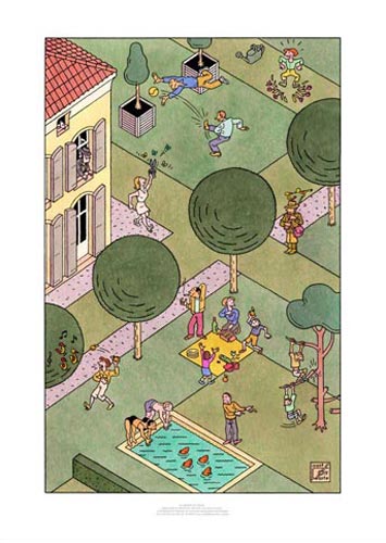 Joost Swarte made a visitor's guide for the Musée Hébert in Grenoble, containing various drawings of the famous gardens of this museum. We were given permission to use one of them for a print.