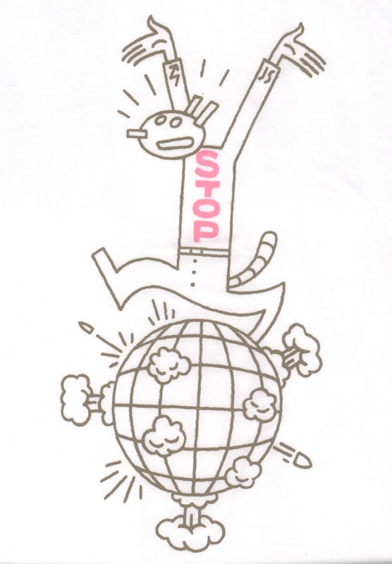 Voor een project van zijn kleindochter, ontwierp Joost Swarte dit t-shirt design. Verkrjgbaar in een wit t-shirt met een zwarte lijn of een wit t-shirt met een donkermosterd lijn.